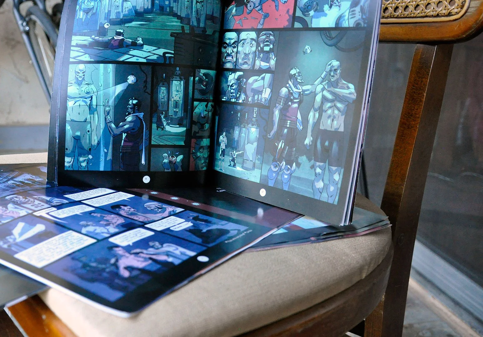 Self-published via Kickstarter in 2014, Outcasts of Jupiter was created in collaboration with my brother and artist Shof Coker. The graphic novel marked my entry into the world of comics and followed a group of outcasts on a mission to rescue one of their own from a mysterious Morrocan castle known as The Burj.